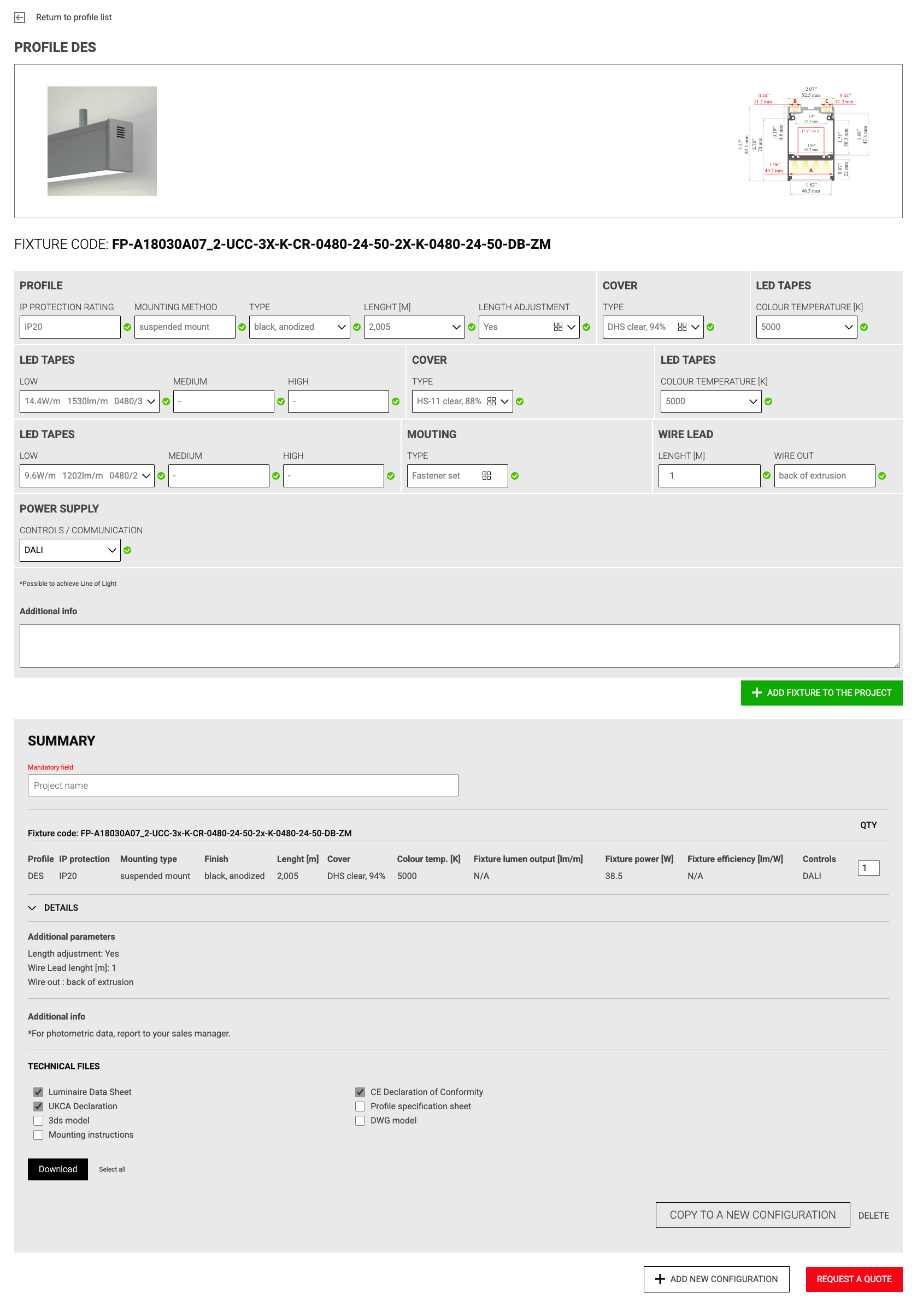 Konfigurator oświetlenia LED zrealizowany dla KLUŚ Design
